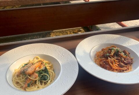 湯来町産の長ナスと自家製トマトソースのパスタ
